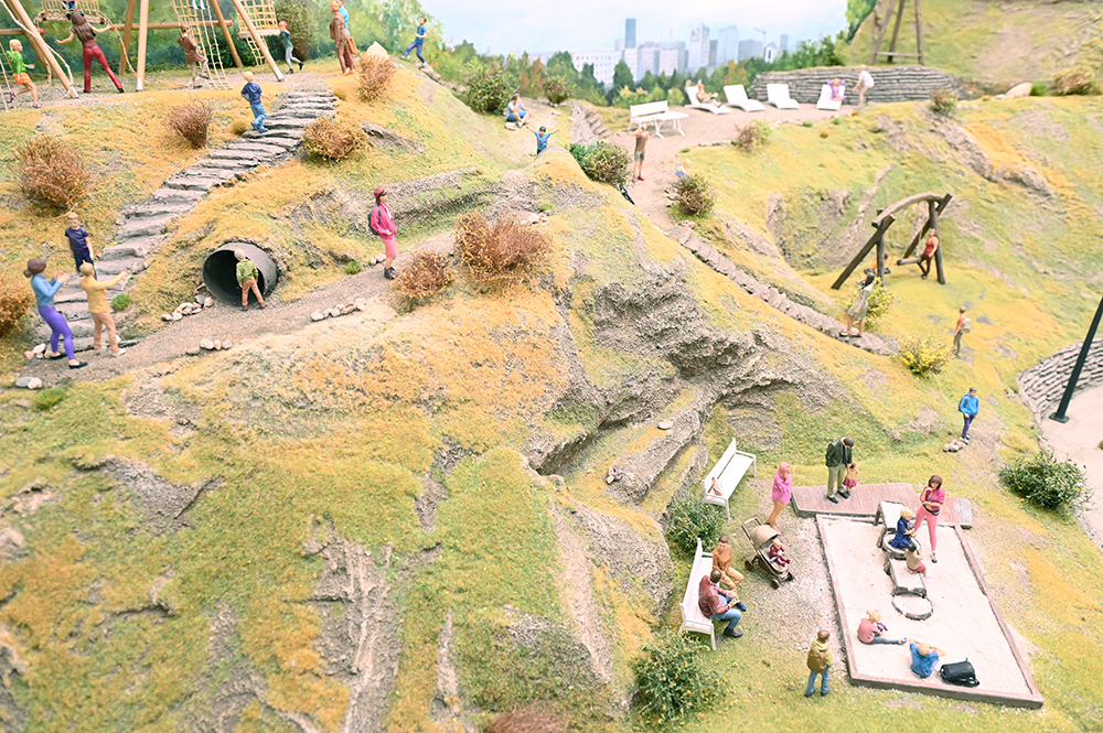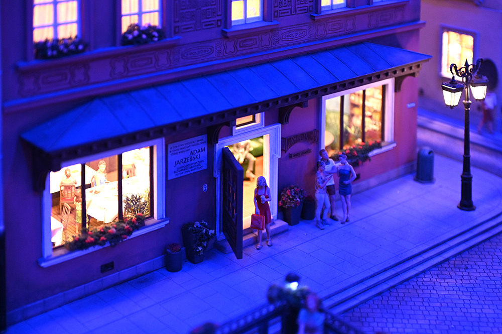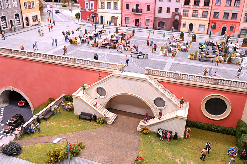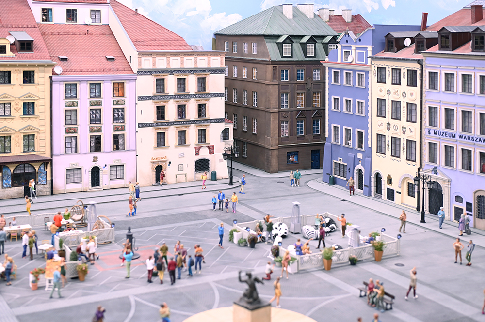 Cudowny warszawski świat w miniaturze. Wiele znanych obiektów w trybie 24 godziny. Ponad 150 obiektów, 5000 figurek, 200 samochodów, 500 metrów torów, mosty, tunele itd.